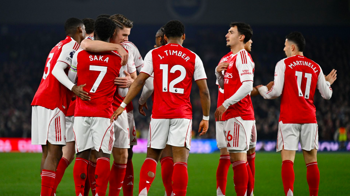 最终,阿森纳客场1-0战胜布莱顿,在积分榜上7分领跑。