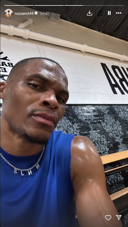 开云-积极备战!威少社交媒体晒出训练后大汗照 表情桀骜!