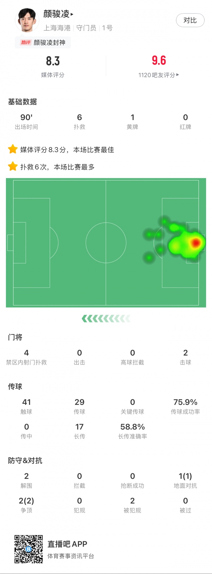【】中超第20轮最佳球员评选出炉,34岁颜骏凌当选本轮最佳!颜骏凌在上海德比6次扑救封神,帮助上海海港在客场2-1击败上海申花。